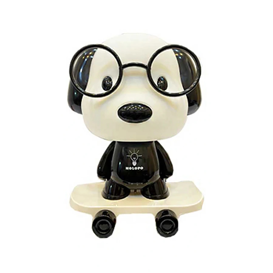 طراحی خلاقانه این چراغ خواب الهام گرفته از یک سگ بامزه است که سوار بر اسکیت شده و در حال حرکت است. همین ویژگی باعث می شود کودک ارتباط عاطفی خوبی با آن برقرار کند و زمان خواب برایش به لحظه ای شیرین تبدیل شود. اگر به دنبال چراغ خوابی با کیفیت و متفاوت هستید، چراغ خواب سگ عینک دار انتخاب شماست.